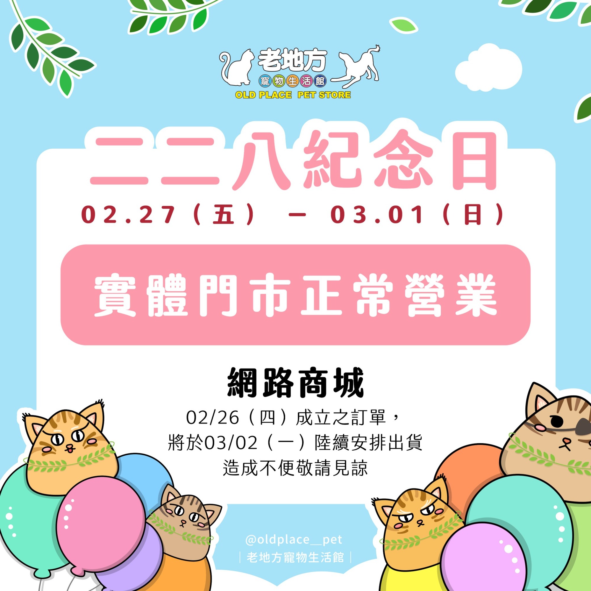 >>>> +* 【二二八和平紀念日營業公告】 *+
